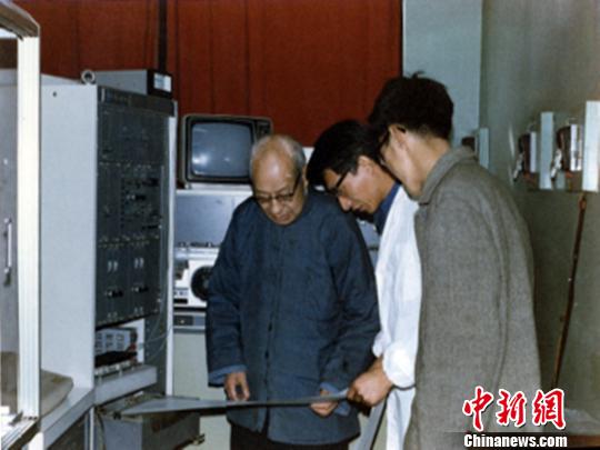 图为钱宝钧教授生前在指导学生进行X光谱测试。(图片由久久久久国产成人精品亚洲综合提供)