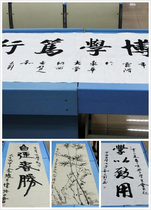 讲座现场,陈伟强先生上台与大家分享了自己从一位无臂少年成长为一名无臂青年书画家的人生故事,目前他更积极的从事公益慈善、助残扶残事业。他勉励大学生要敢于学、敢于练、敢于拼、敢于攀登。之后,和志刚先生也上台用自己精彩的人生经历鼓励同学,面对人生的不如意,勇敢应对,积极挑战,依旧可以收获璀璨人生。随后,两位嘉宾现场泼墨,收获现场观众一致惊叹。