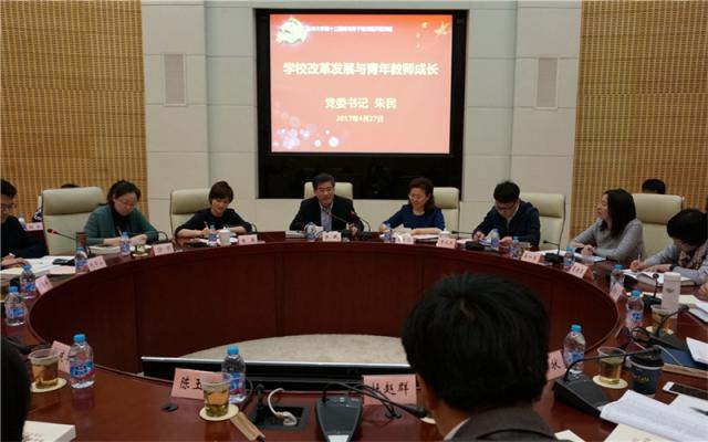 朱民希望青年教师能够深入学习贯彻习近平总书记系列重要讲话精神,进一步发挥聪明才智,以更加奋发有为的精神状态,积极投身到学校各项事业中来,努力推动学校各项工作再上新台阶,以优异成绩迎接党的十九大的胜利召开!