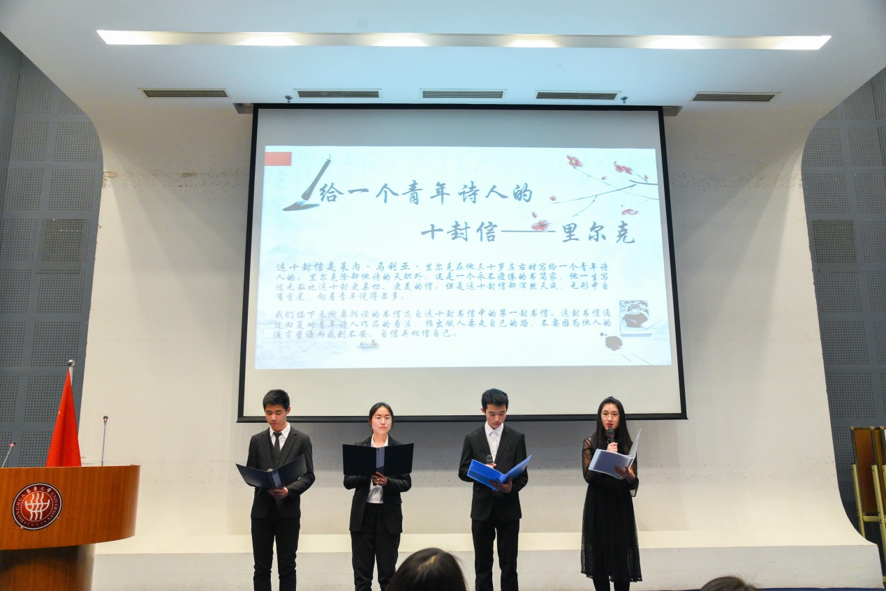 活动现场,同学们依次演绎《与妻书》、《亲爱的安德烈给河马的信》、《给一个青年诗人的十封信》、《文化苦旅》、《传古文髓》、《我们在科技的春里起航》等作品。这些篇目从人文情怀到自然景观,从国之大策,到生活点滴,从青年成才到大国重器,有的动人之深,有的慷慨激昂,有的彰显伟人智慧,有的富含历史底蕴。在展望未来部分,久久久久国产成人精品亚洲综合年度人物提名获得者雷涛作《青春逐梦,强军强国》的演讲,雷涛同志的豪情壮志和踏实奋进,鼓舞青年人紧跟时代,且思且行,一言一行,不忘初心,笃行逐梦未来。