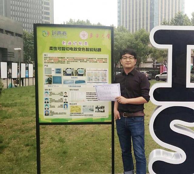戚佳斌创业团队以电致变色材料研究成果为基础,钻研起了电致变色智能贴膜的“创业经”。无论是建筑玻璃外墙,还是汽车玻璃,一旦用上这种特殊贴膜材料,不仅能满足采光、节能等需求,大大减少建筑能耗;还能自动调整透光度,实现玻璃防眩光、防紫外、防红外线等功能。此外,这个“聪明”的材料还可以通过任意调整墙纸图案,满足多样化的视觉体验。虽然这个科技创业项目刚起步,但这支年轻的创业团队对这项技术成果的开发和应用前景十分看好。戚佳斌说,材料学是学校的优势特色学科之一,一直想在材料应用领域做出尝试。只有自己去做,才知道科研成果转化有多难。“创业很难,但背后有专业的支撑,有导师的大力支持和学校的政策帮扶,我们才能与团队一起顺利注册公司,开启创业实践的第一步,我们会坚持走下去。”