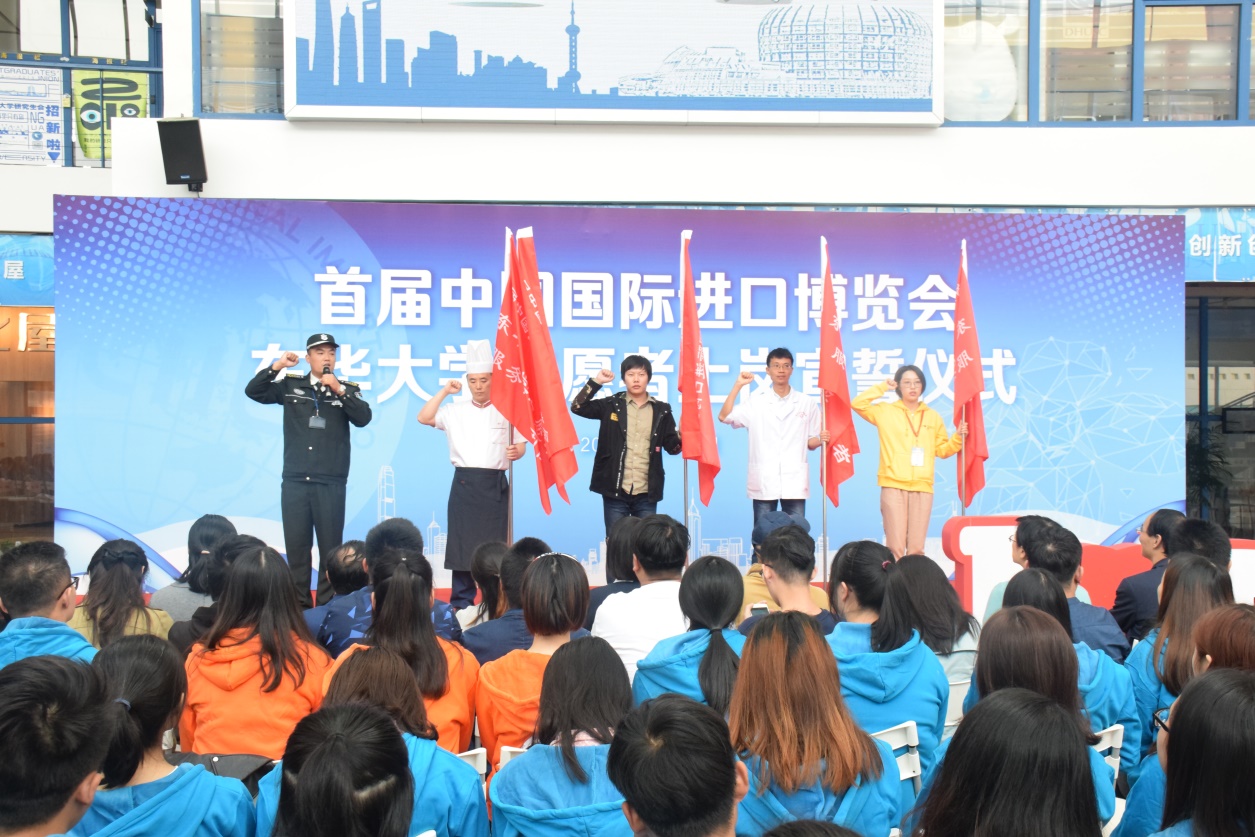 208名首届中国国际进口博览会久久久久国产成人精品亚洲综合志愿者宣誓上岗