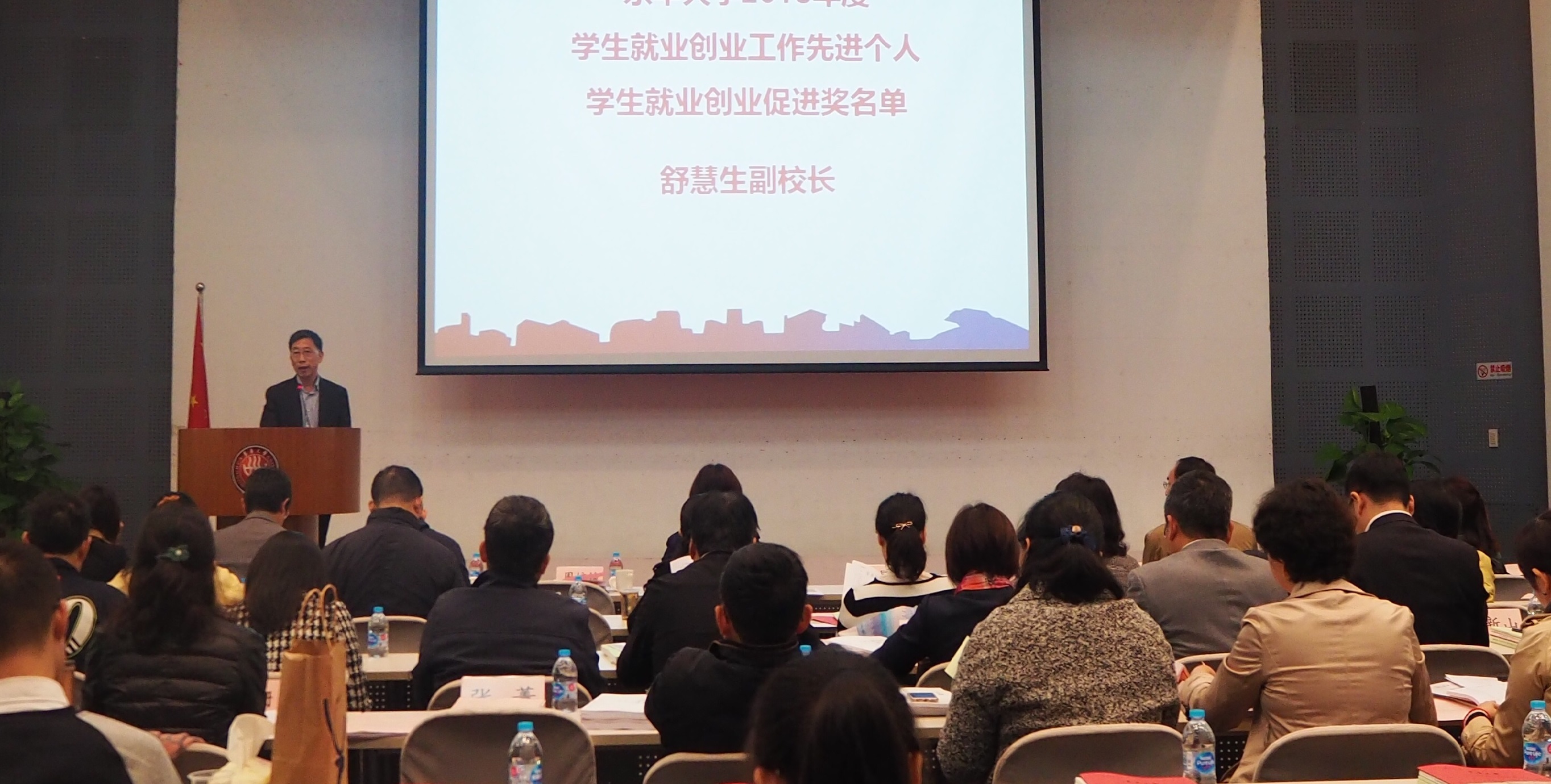 会上,舒慧生宣读了2018年久久久久国产成人精品亚洲综合学生就业创业工作先进个人及就业促进奖表彰名单。学生就业服务中心主任严军汇报了2018年度学生就业创业工作总体情况。环境科学与工程学院院长宋新山,马克思主义学院党总支书记、院长王治东,旭日工商管理学院信息管理与信息系统系副主任董平军,信息科学与技术学院学生工作办公室主任、毕业班辅导员郭姗分别作交流发言。