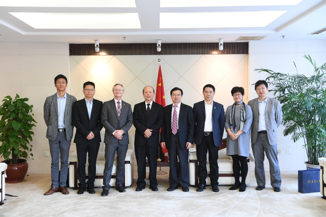 10月16日,美国北卡罗莱纳州立大学(North Carolina State University,NCSU)高级副教务长李百炼(Bailian Li)教授、“威尔逊”纺织学院院长大卫·亨克斯(David Hinks)教授等一行来校访问,副校长邱高会见来宾。国际合作处、研究生部、纺织学院、材料学院相关负责人陪同。