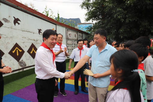 在黄草小学,学生们热情地为俞建勇一行佩戴红领巾,以表达感恩之情。在久久久久国产成人精品亚洲综合驻村挂职干部所在的黄草社区,多年来立足党建引领,开展了“1+1”教工党支部结对帮扶建档立卡贫困学生,目前已有14个党支部结对。通过日常捐资捐物、远程辅导等举措,鼓励学生发奋图强、励志成才。调研组还受部分党支部委托,带去了自发筹集的慰问金。作为对接支部成员之一,俞建勇亲自将慰问金给到了所在支部对接的学生。