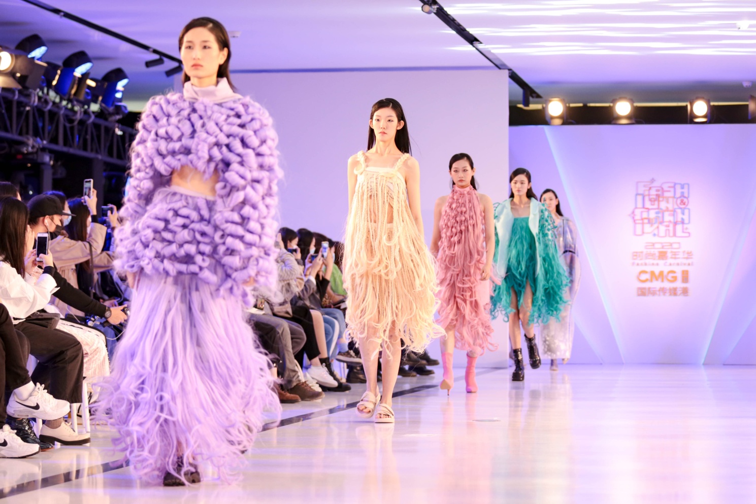 这场特别的大学生创意时装秀汇集了我校服装与艺术设计学院大学生设计师的11个系列43套的服装设计作品,其中的部分作品刚刚斩获了今年的伦敦大学生时装周、中国国际大学生时装周的多项大奖。这些作品以“日常行为”为主题,从日常所及的细节寻找创作灵感,大胆而充满想象力,二次甚至多次改造现成面料与印花工艺,不仅在款式造型、色彩组合上有所突破,更在文化符号、工艺结构、情绪传达、潮流态度等方面代表着当代大学生的创意新趋势。
