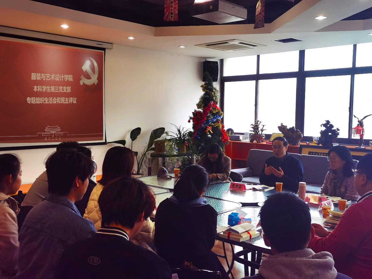 3月17日,校党委常委、副校长陈南梁参加服装与艺术设计学院本科学生第三党支部“传承红色基因 践行初心使命”专题组织生活会和民主评议。服装与艺术设计学院党委副书记刘雯玮和支部全体党员参加学习。党支部书记崔净齐主持会议。