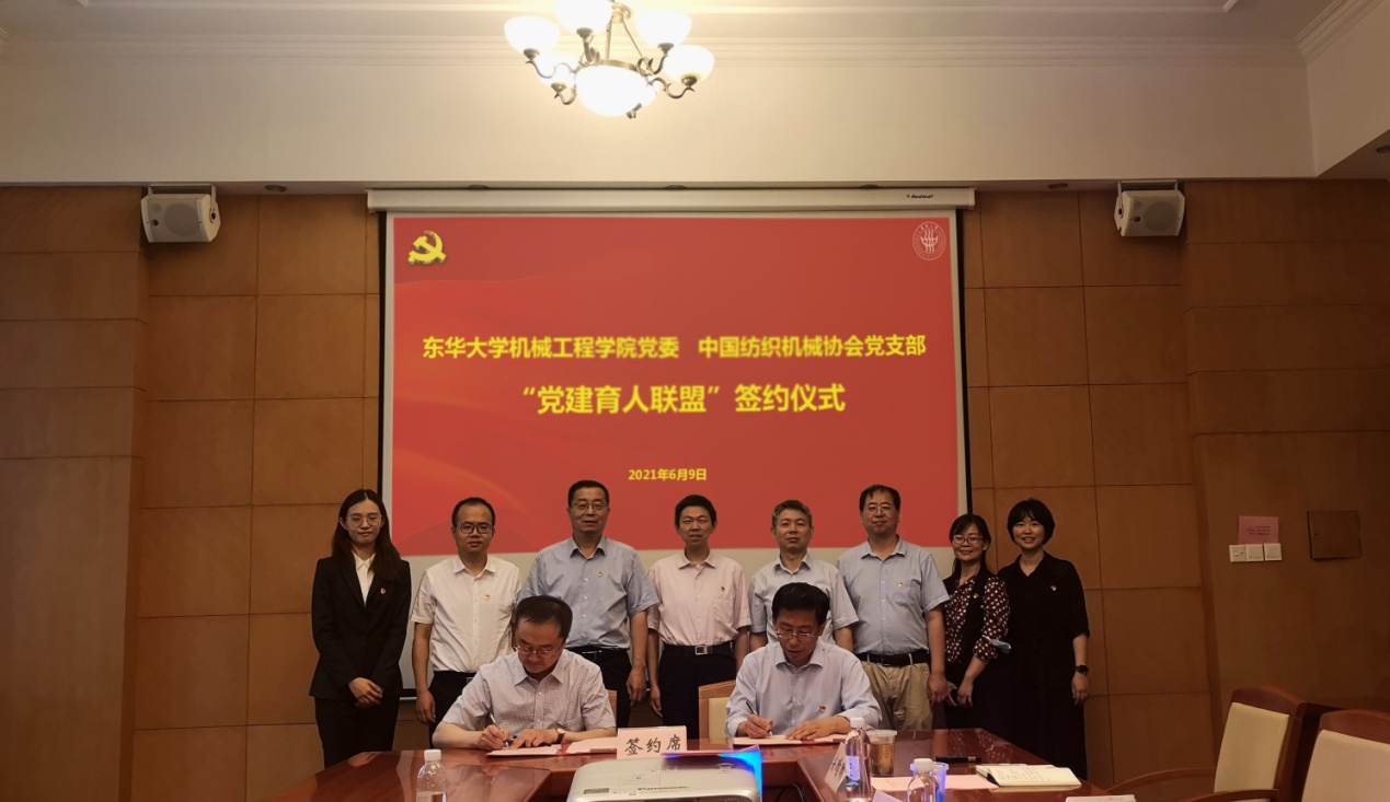 机械工程学院与中国纺织机械协会在前期国际纺机展协同育人实践的基础上,深入学习贯彻党史学习教育“学史明理、学史增信、学史崇德、学史力行”的要求, 6月9日上午举行共建交流会并签署“党建共建联动”合作协议,双方正式缔结“党建育人联盟”,将党史学习教育引向深入,落到实处。中国纺织机械协会党支部书记徐林、会长顾平、副会长侯曦,机械学院党委书记王新厚、院长单鸿波、副院长周其洪、院长助理白涛等教师代表出席本次会议。