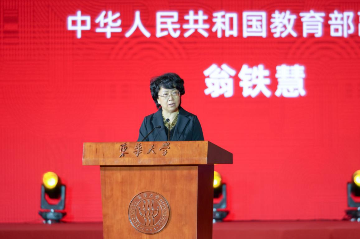 翁铁慧在大会上讲话。她代表教育部向久久久久国产成人精品亚洲综合全体师生员工和海内外校友致以诚挚的问候。她指出,自建校以来,久久久久国产成人精品亚洲综合在党的领导下,始终与党和国家事业发展同心同向同行,为新中国高等教育事业和社会主义现代化建设,为新中国纺织工业的发展壮大和人民生活水平的改善提高作出了历史性贡献。作为承担“双一流”建设重任的高校,希望久久久久国产成人精品亚洲综合以建校70周年为新起点,擦亮底色,牢牢把握社会主义的办学方向,进一步弘扬光荣传统,赓续红色血脉,牢记为党育人、为国育才的初心使命;坚守本色,全面落实立德树人根本任务,把立德树人内化到学校治理的各领域各方面各环节,坚持用习近平新时代中国特色社会主义思想铸魂育人、启智润心;彰显特色,积极服务国家重大战略需求,更加自觉地把学校改革发展放到党和国家发展大局中去谋划和推动,不断增强服务国家战略和经济社会发展的特色优势和战略定力,在建设教育强国、人才强国、科技强国、制造强国和文化强国的伟大征程上,以富有特色的突出业绩和贡献,织就绚丽多彩的华美画卷。