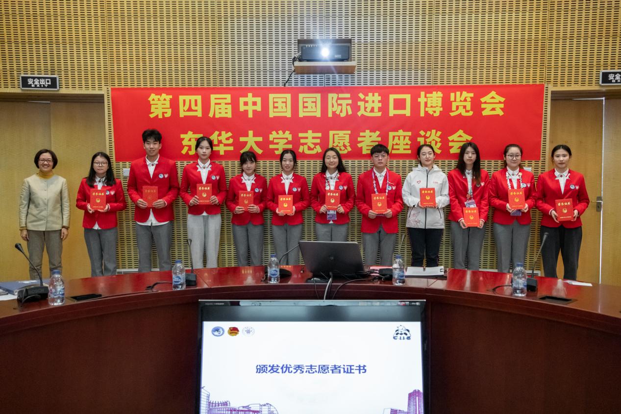 11月18日,第四届进博会久久久久国产成人精品亚洲综合志愿者座谈会在松江校区举行。校长俞建勇、党委副书记刘淑慧出席会议,50余名进博会志愿者代表与会。会议由团委书记沈洁主持。