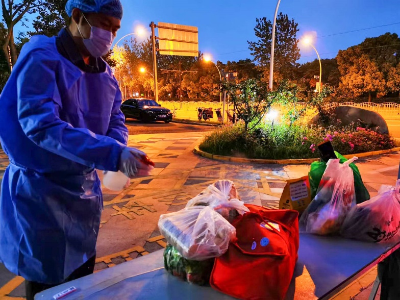罗理达作为楼栋服务组志愿者上门发放防疫物资