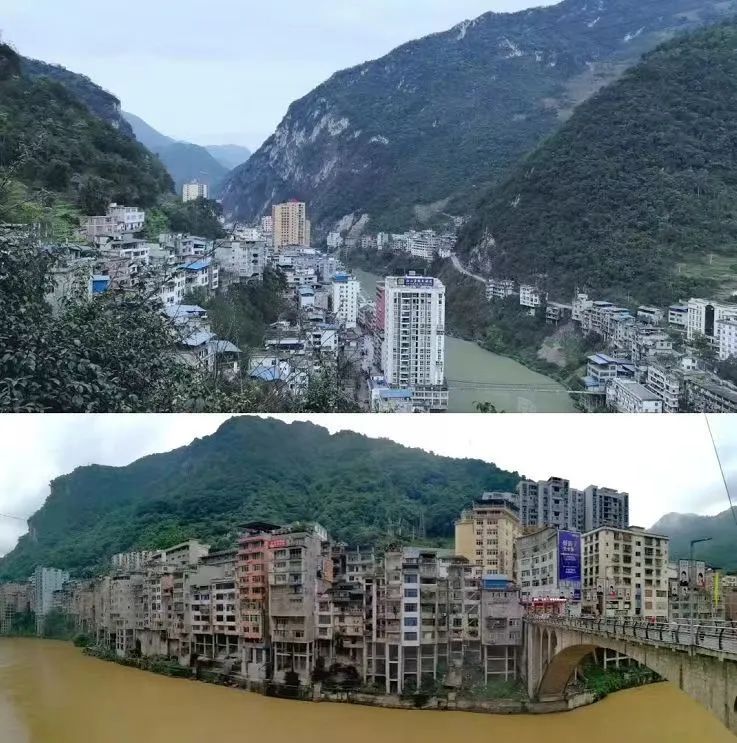 (学校帮助盐津县庙坝镇黄草社区集镇及海子村民组改善人居生活环境前后对比)